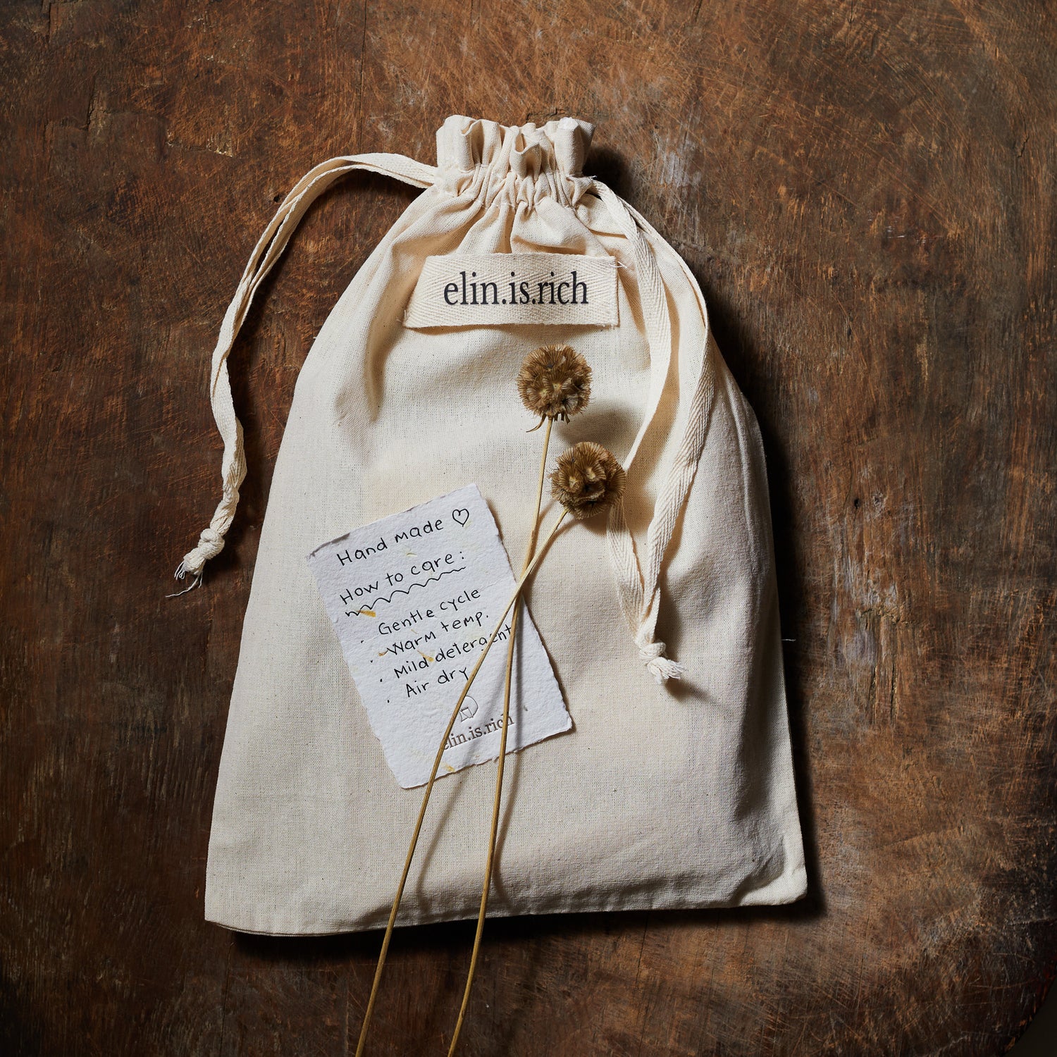 Doğallıkla zarafeti bir araya getiren tasarımlar; yavaş, dingin ve özenli bir süreçle ortaya çıkıyor, tamamı el yapımı ürünlerin her biri işini tutkuyla yapan kadınların usta elleri tarafından sevgiyle ve özenle tek tek elde dikiliyor.
