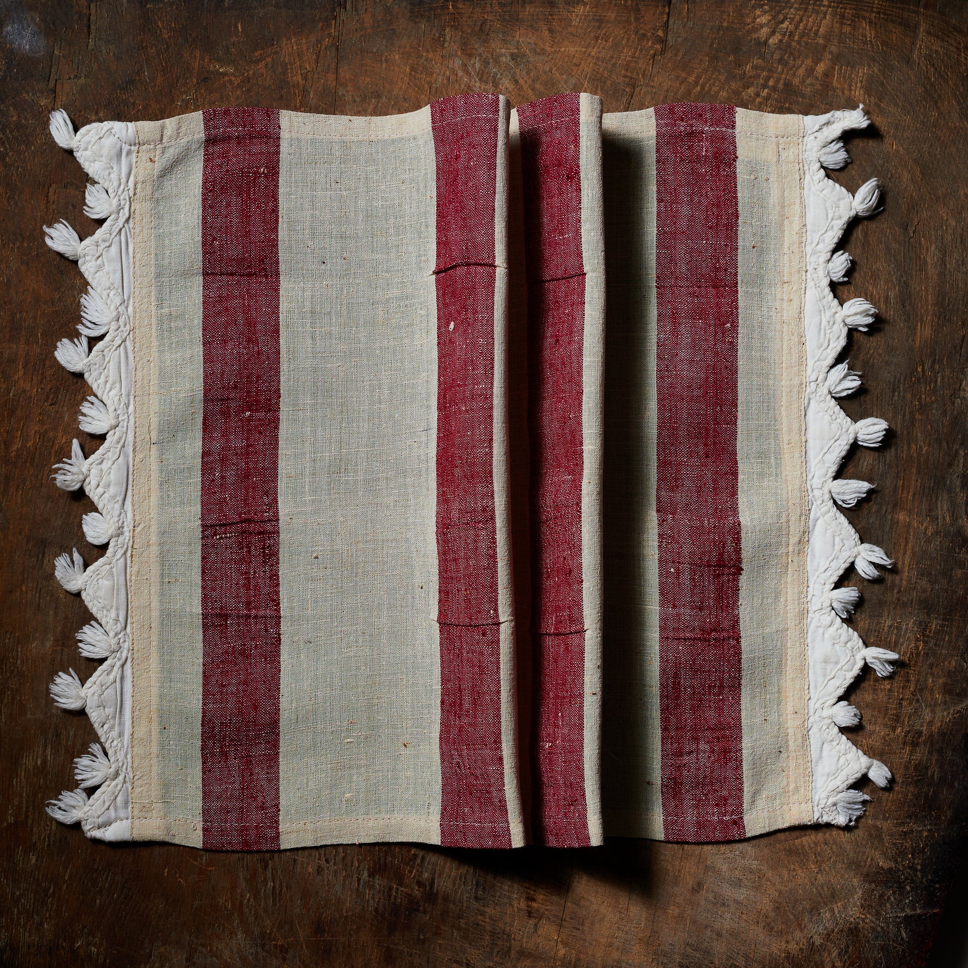 El dokuma vintage keten, saçak detaylı. 2'li set