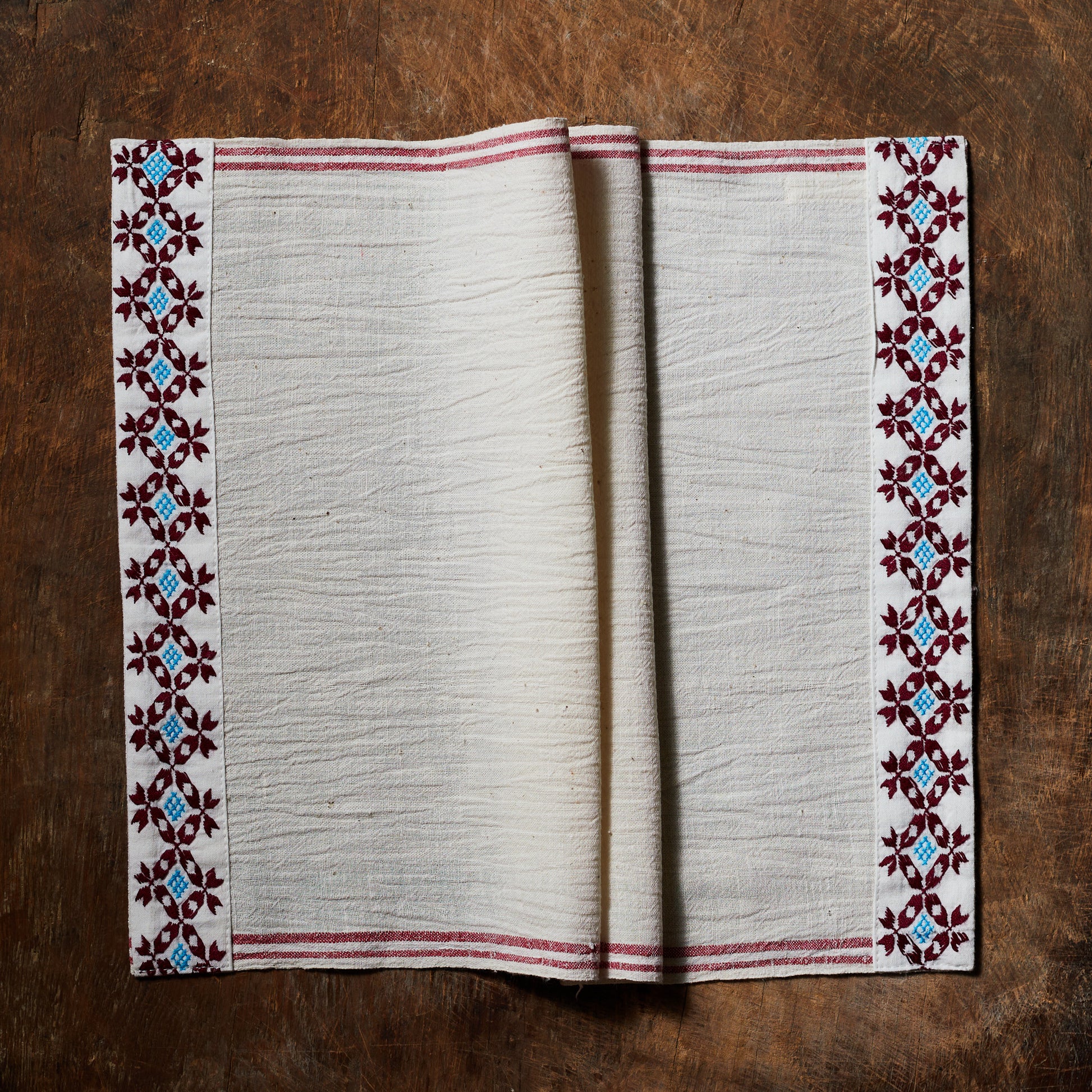 El dokuma kendinden dokulu vintage keten, kanaviçe detaylı. 2'li set