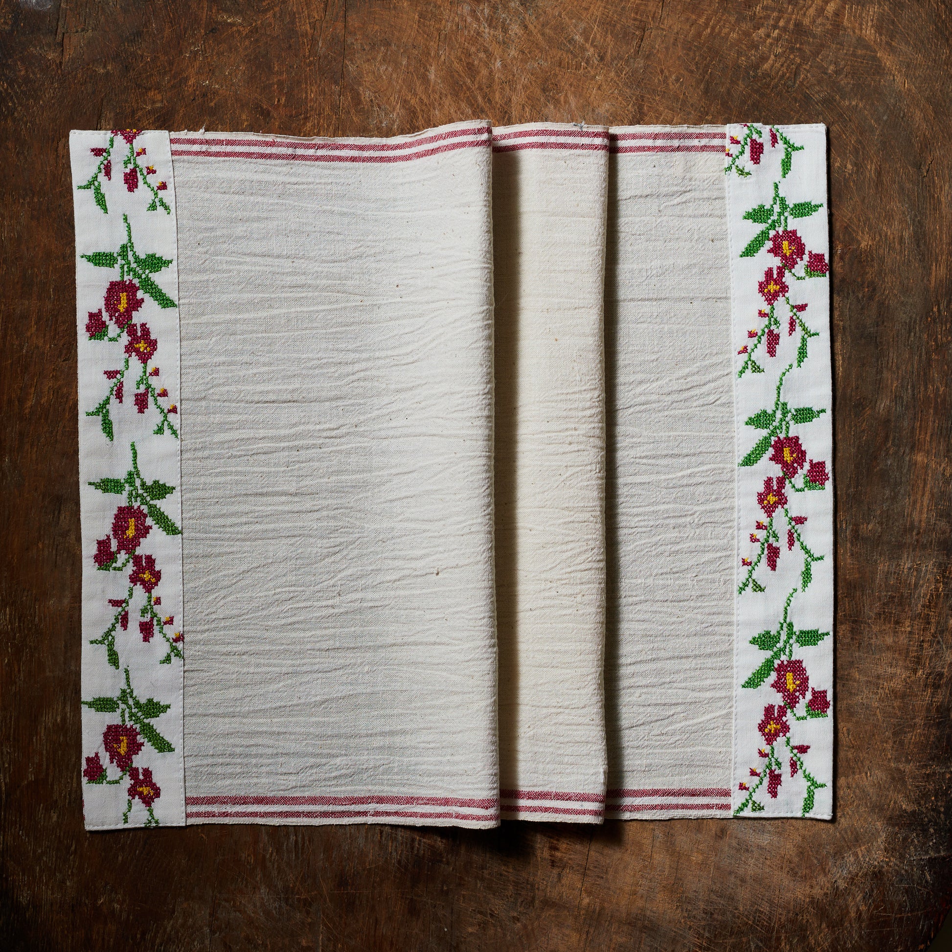 El dokuma kendinden dokulu vintage keten, kanaviçe detaylı. 2'li set