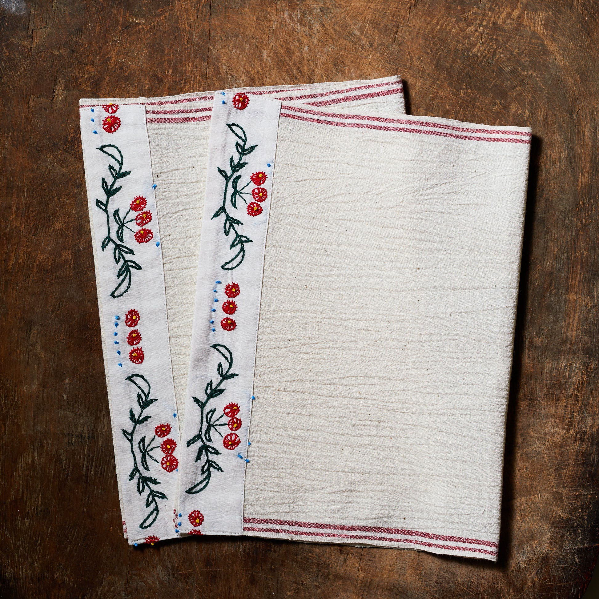 El dokuma kendinden dokulu vintage keten, kanaviçe detaylı. 2'li set