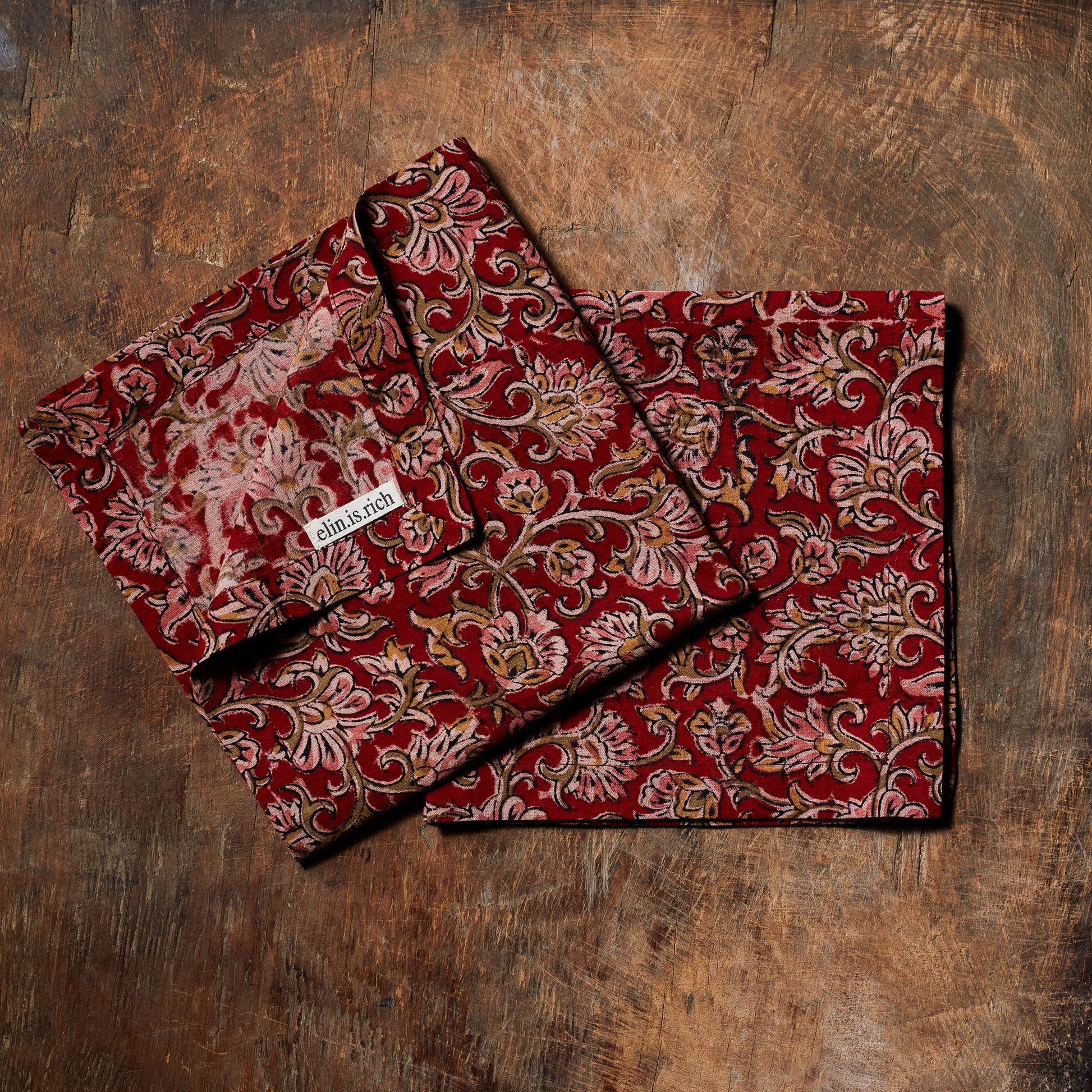 Pamuk kumaş üzerine blok baskı. 2'li set